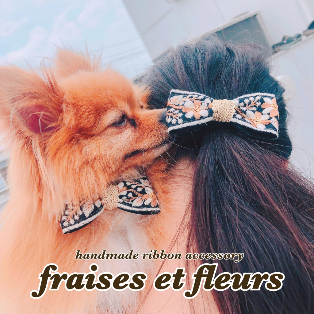 〜ワンコと女子のおリボンやさん〜 様々なリボンに遊び心を少しプラスして、ハンドメイドだからこそできるオシャレで嬉しい気分になれる、そんなアクセサリーや雑貨を販売します。 fraises et fleursのおリボンは人犬兼用のものが多数あります。ぜひリンクコーデをお楽しみください。