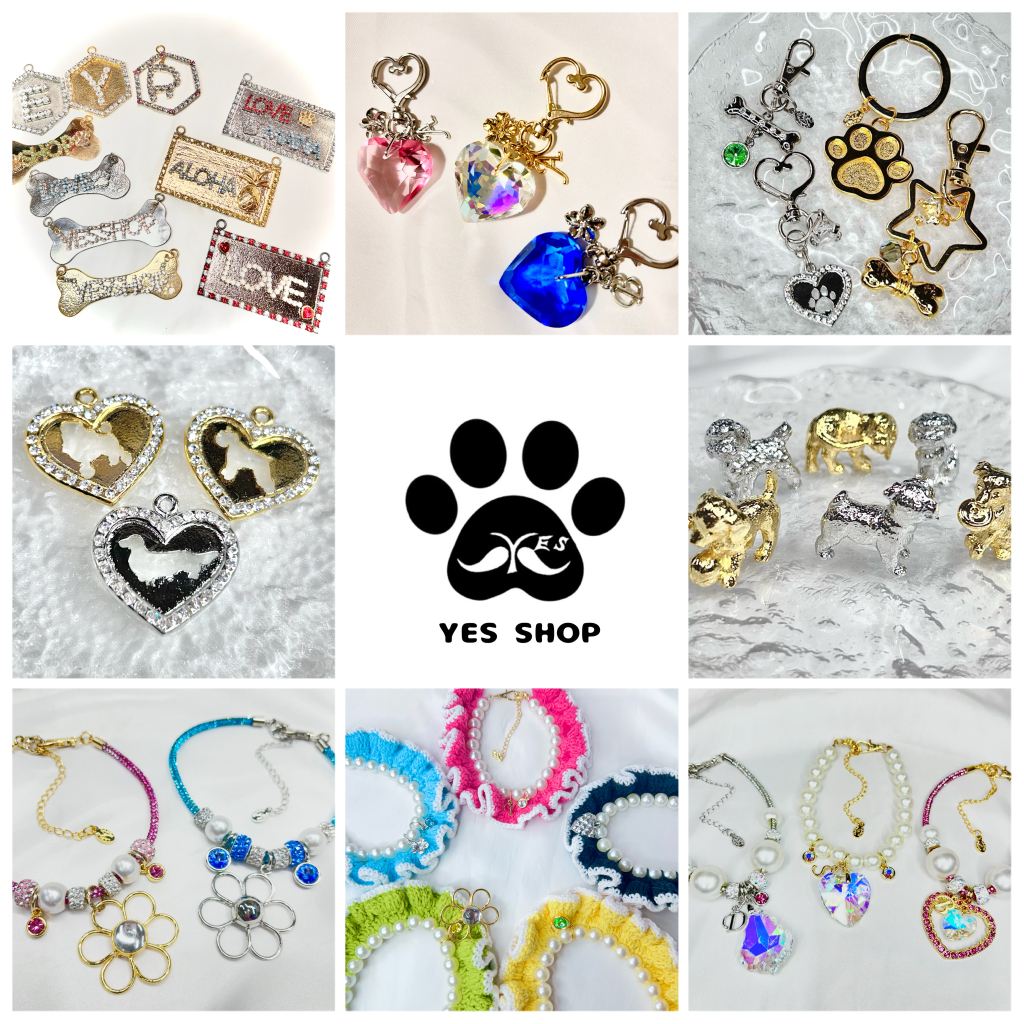 当店の国内鋳造工房で金属を溶かして型に入れてパーツを作っています。そのパーツを使って首輪などにつけるオリジナルチャーム、カートアクセサリー、ネックレスなど、キラキラがたくさんです またネームタグやバッグなどのワークショップもやっているので、ぜひ遊びに来て下さいね♡ 下記の決済方法がご利用可能です 現金、PayPay、クレジットカート