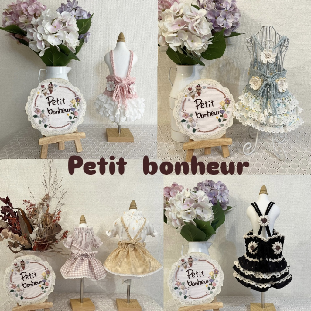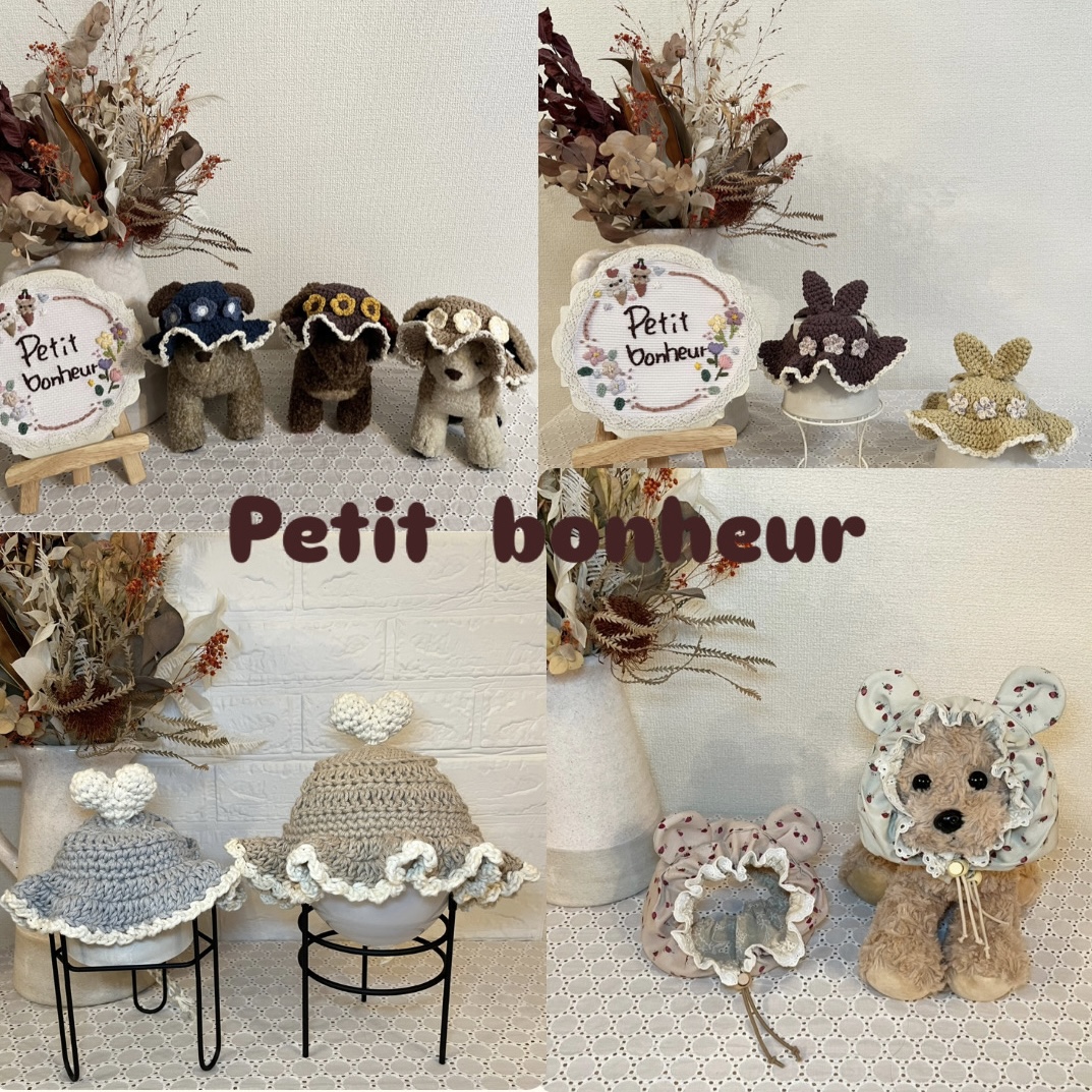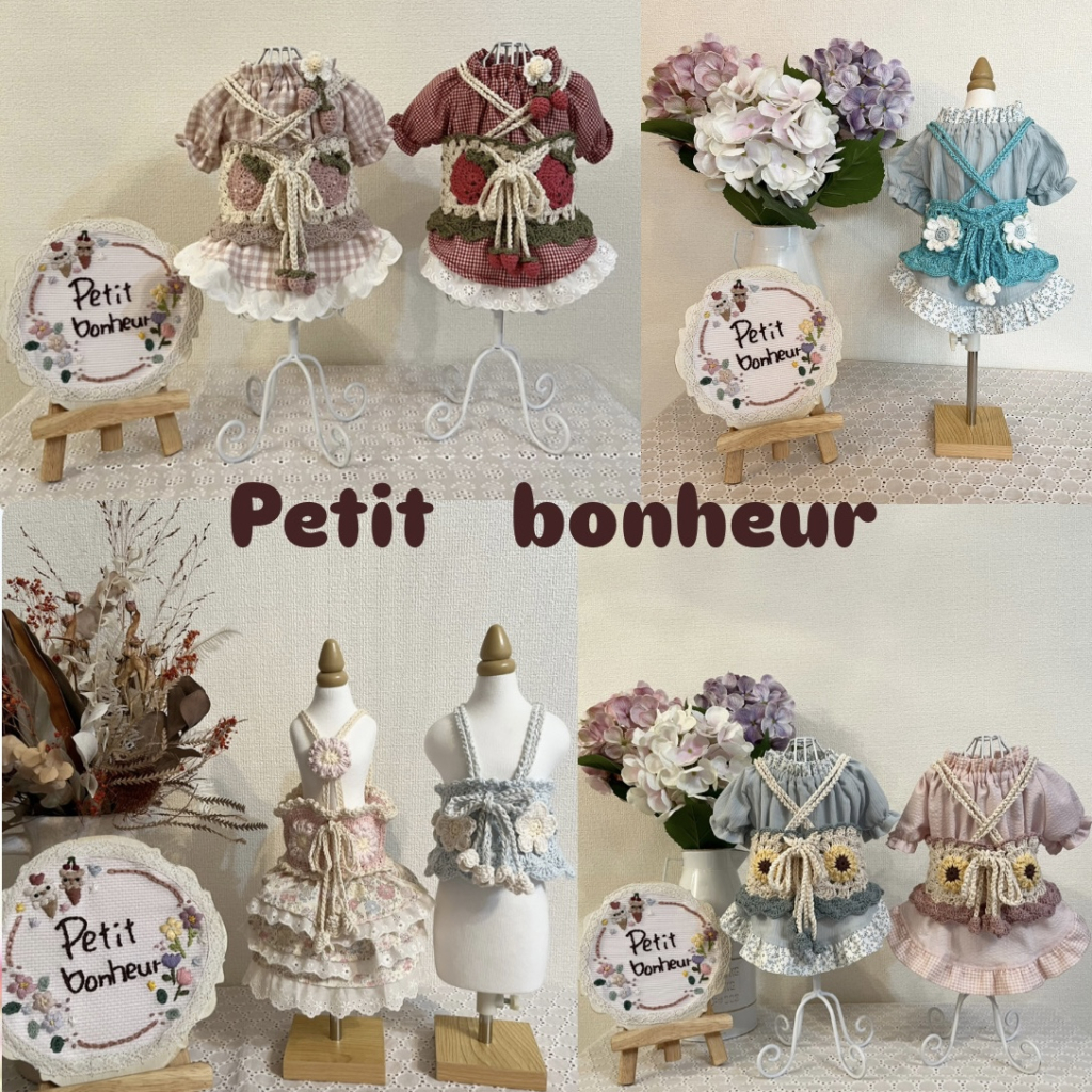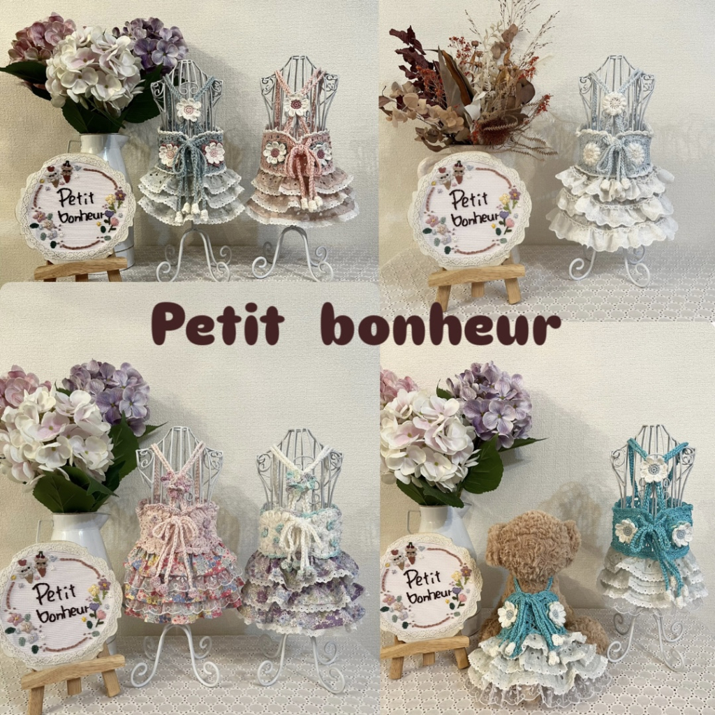 屋号の『Petit bonheur』=『小さな幸せ』をコンセプトに、「ほっこり温かい気持ちになってもらえたら」との想いを込めて、ものづくりをしています。・*・:♪ 肌触りのよいコットンモチーフと色柄豊富な布のコラボしたビスチェやワンピース、カフェマットやスタイ、ニット帽やスヌード、ワンちゃんの犬種や毛色に合わせたオーダーメイドのうちの子ボトルカバーなどを販売いたします♪ 大切なワンちゃんのお気に入りのひとつに加えていただけたら嬉しいです。・*・;♪ イベント当日の決済方法 *現金 *paypay